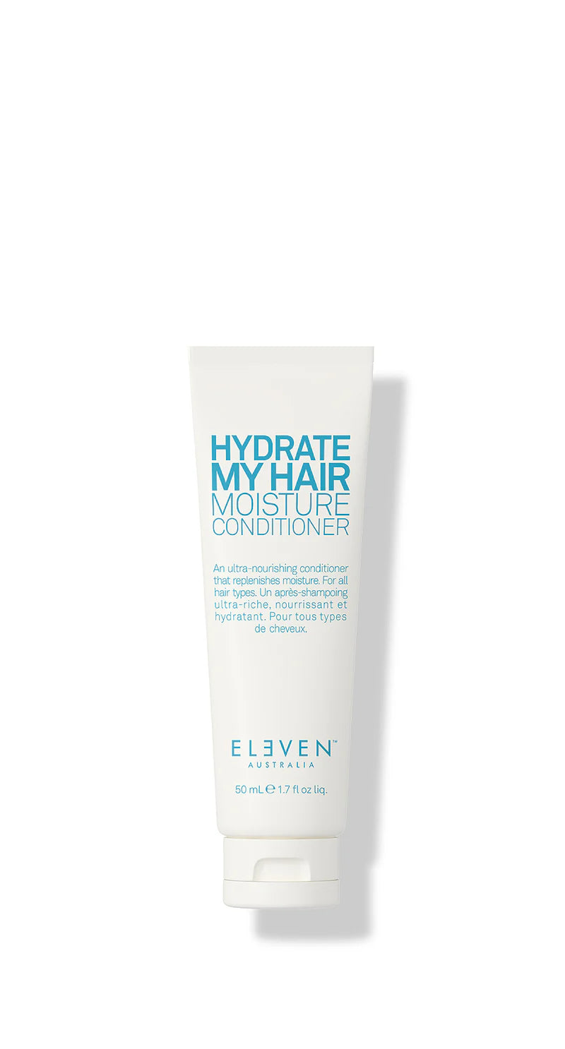 Dehydratatie is de grootste oorzaak van broos haar. HYDRATE MY HAIR MOISTURE CONDITIONER 50 ML is een kleurveilige, ultravoedende crèmespoeling. Avocado-olie, gehydrolyseerde tarweproteïnen en gehydrolyseerd tarwezetmeel genezen en beschermen het haar tegen droogte.